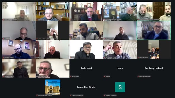 Today the diocese of Jerusalem held a Lenten clergy retreat. In the first session, Dean Hatim Shehadeh reflected on the Passage from Romans 8.35-39 followed by discussion and reflections from the clergy. In the afternoon session our colleagues from the Dioceses of Dublin and Glendalough joined the clergy from the Diocese of Jerusalem, where Archbishop Hosam Naoum offered a reflection of the above Scripture passage and included Psalm 91. Both Archbishops Michael Jackson and Hosam Naoum were grateful to God for the insights shared and encouragement expressed during this retreat.